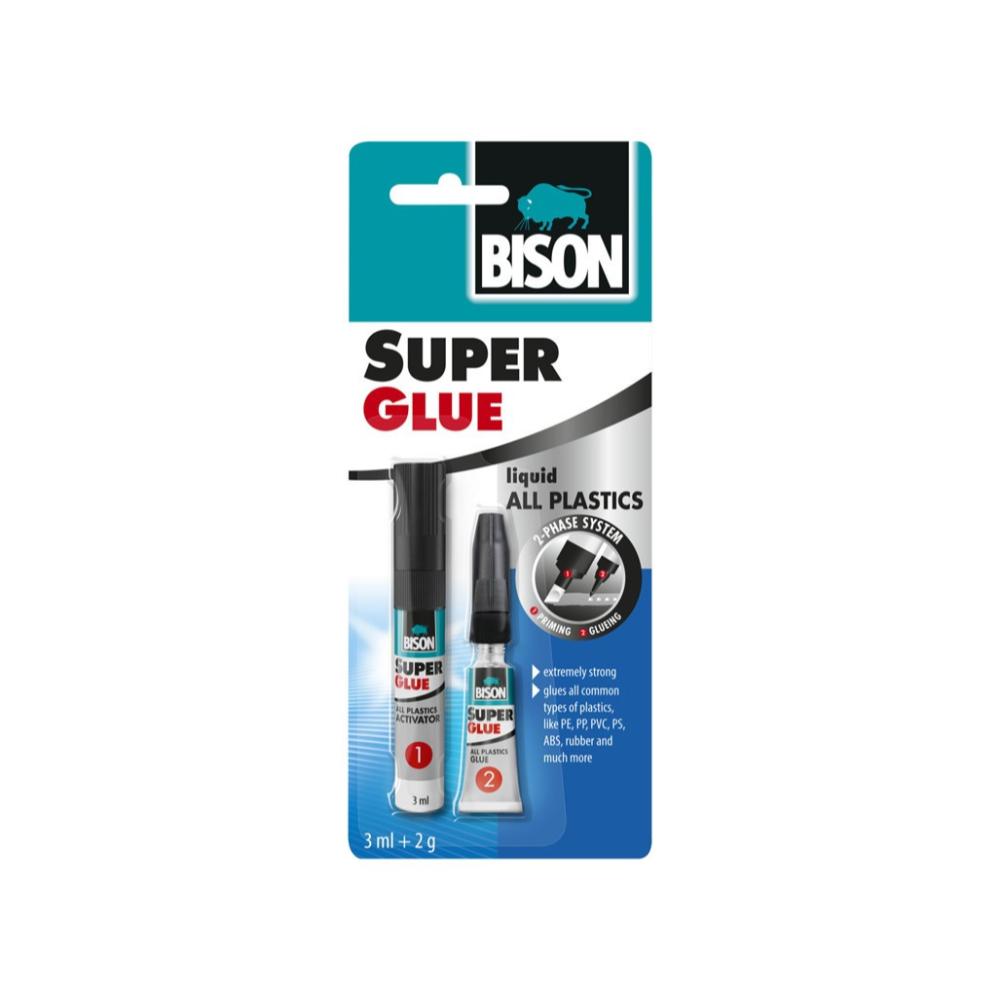 Adeziv instant Bison Super Glue All Plastics, 2 faze, multicolor, 3 ml+2 g