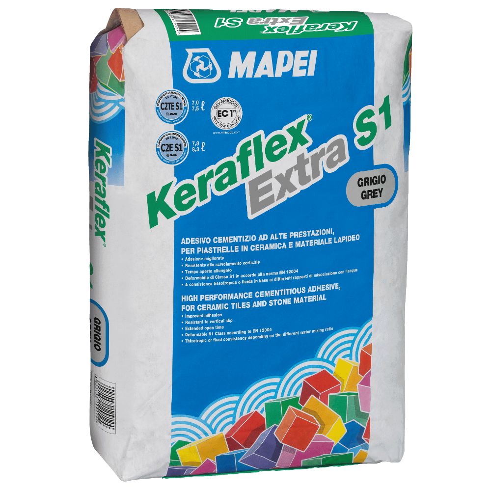 Adeziv pentru placi ceramice si roci naturale Mapei Keraflex Extra S1, interior/exterior, gri, 25 kg