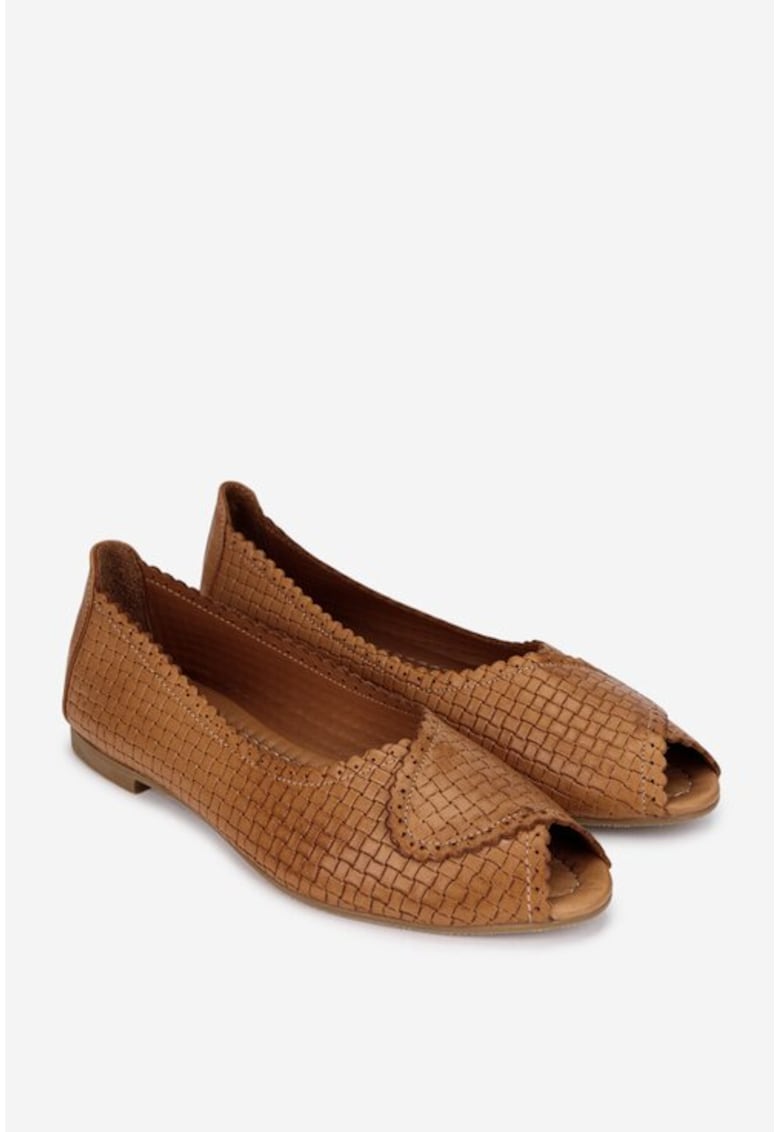 Balerini dama din piele maro cu model