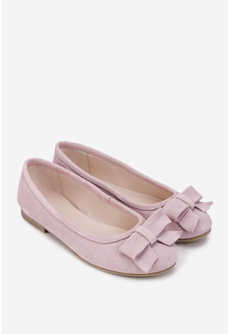 Balerini dama roz pudra din piele intoarsa cu funda
