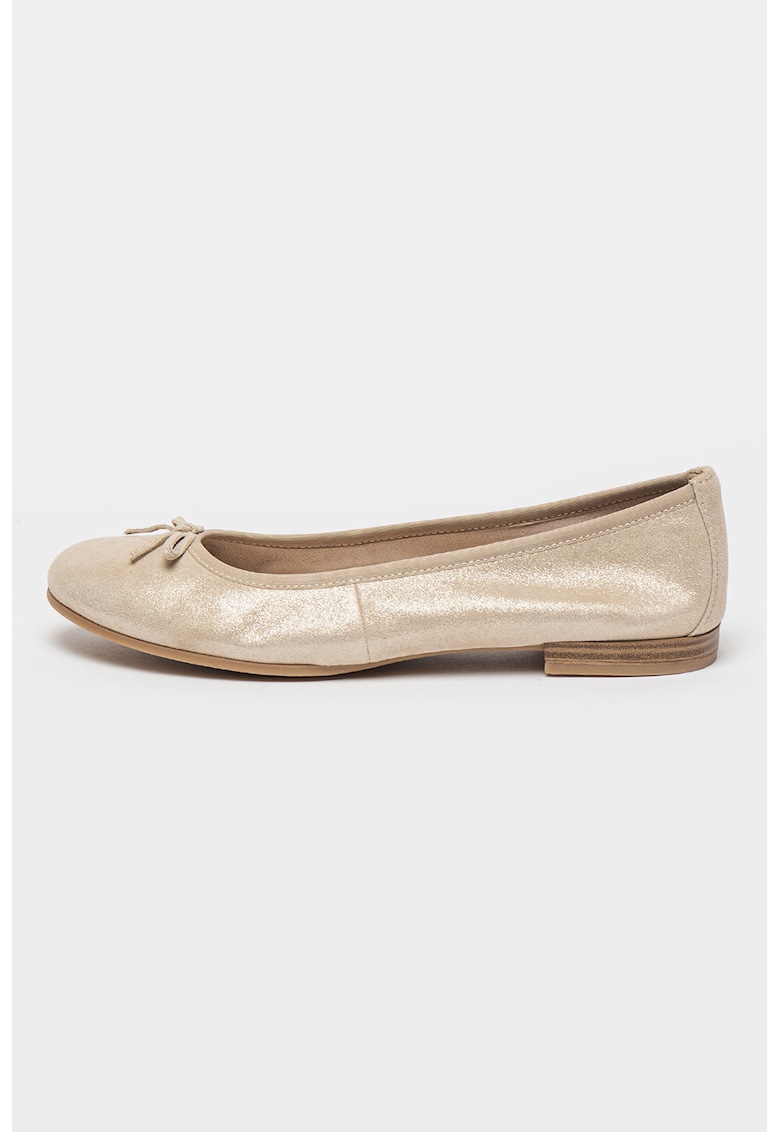 Balerini din piele cu detalii cu funda - Bej