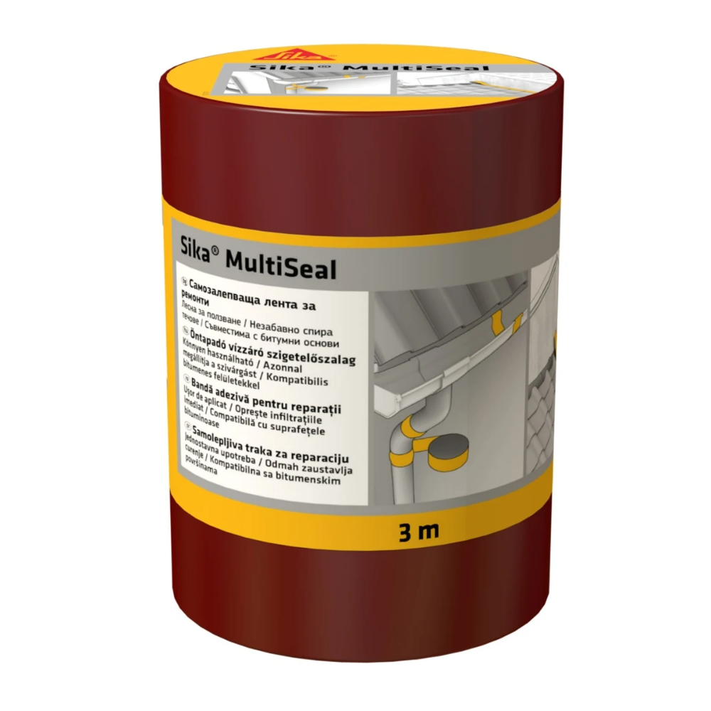 Banda bituminoasa autoadeziva pentru etansare Sika MultiSeal, folie aluminiu, polimer, teracota, 3 m x 200 mm