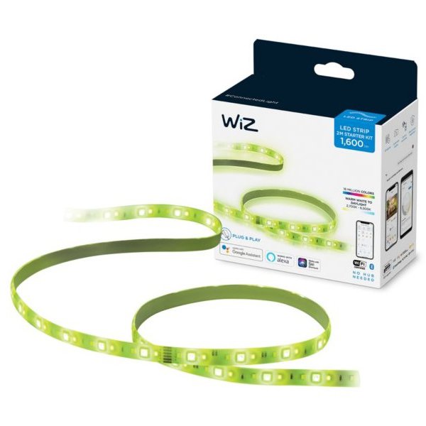 Banda LED RGB inteligenta Starter Kit, Wi-Fi, 20W, 1600 lm, lumina alba si colorata, compatibil Google Assistant/Alexa/Siri, 2 m Wiz 8718699788162