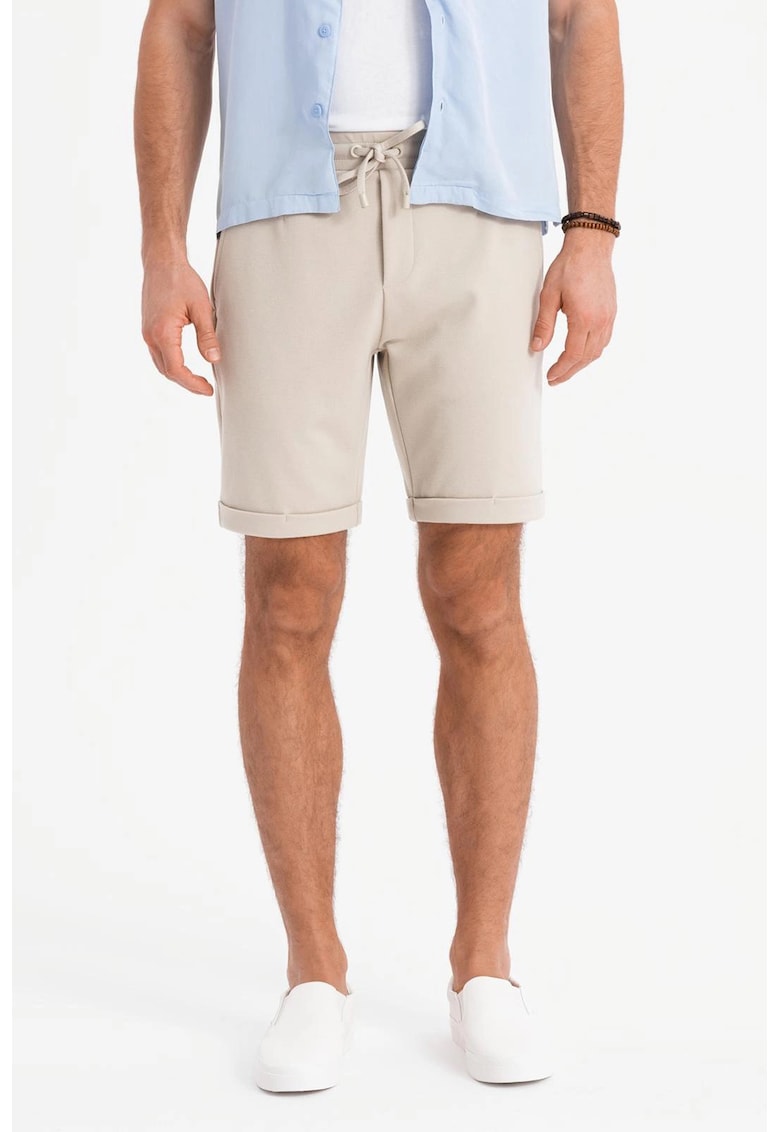 Caracteristici Culoare: bej deschis Imprimeu: uni Material: sintetic - viscoza Stil: casual Croiala: slim fit Talie: medie Buzunare: laterale - buzunar pe partea din spate Lungime: scurti Sistem inchidere: fara inchidere Compozitie Exterior: 75% viscoza - 22% poliester - 3% elastan