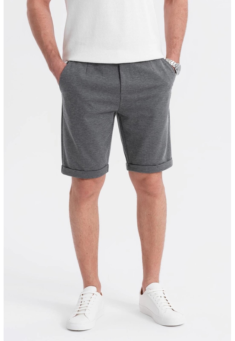 Bermude cu snur de ajustare si terminatii rulate - Gri melange