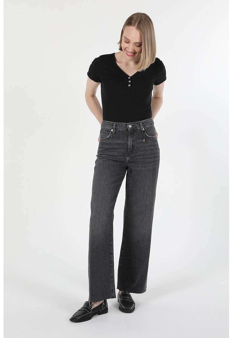 Blugi crop cu croiala ampla si aspect decolorat - Gri inchis