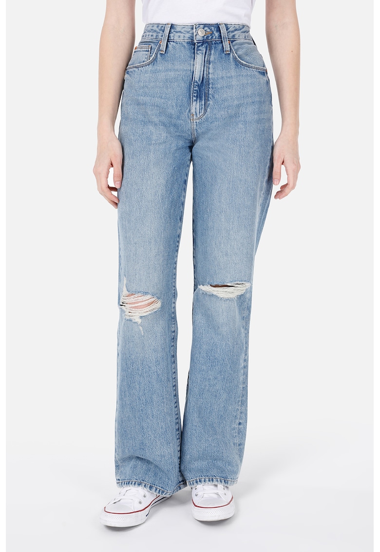 Blugi cu croiala dreapta si detalii cu aspect deteriorat - Albastru prafuit