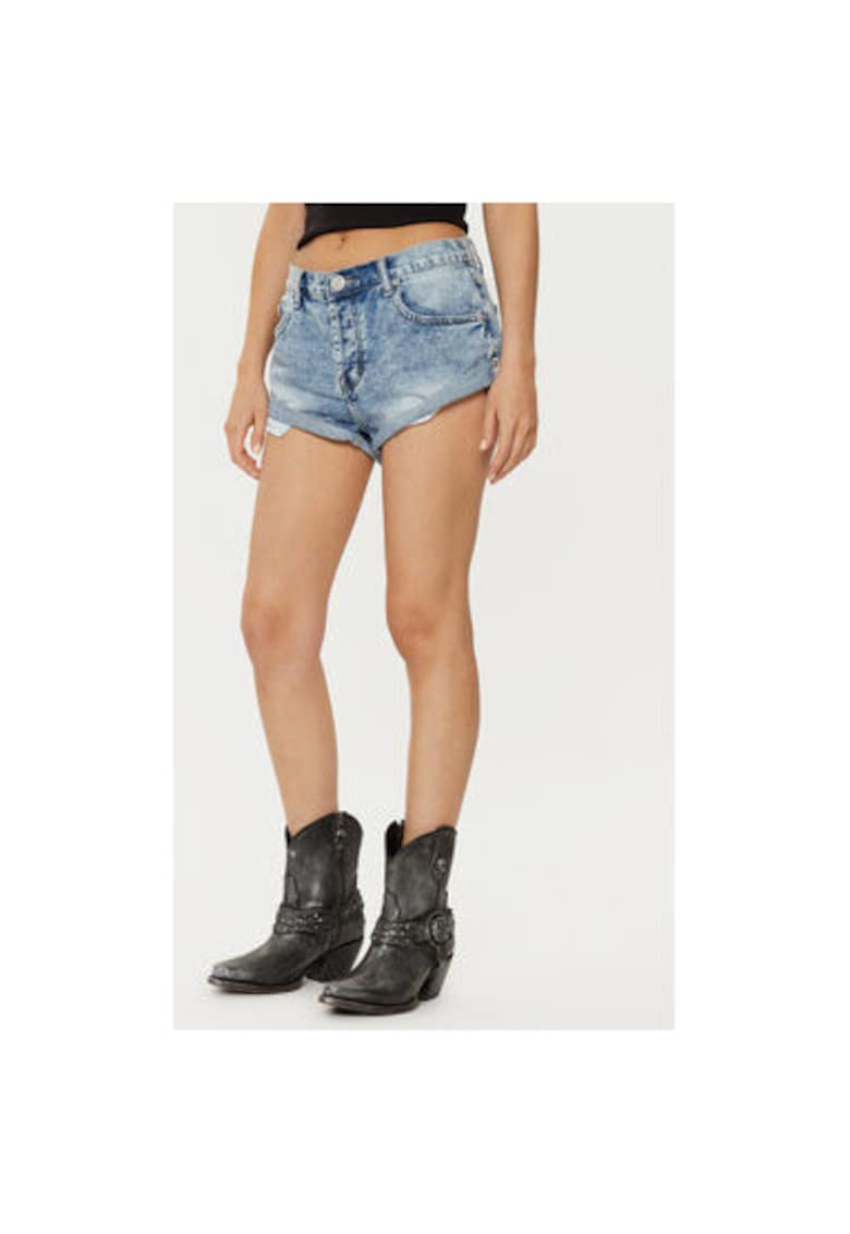 Blugi scurti cu aspect decolorat - Albastru pastel