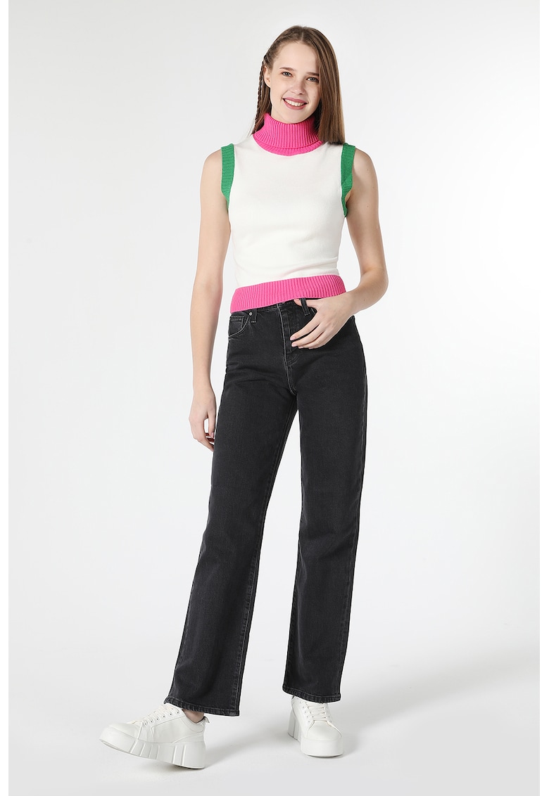 Blugi drepti cu talie inalta Laris - Gri inchis