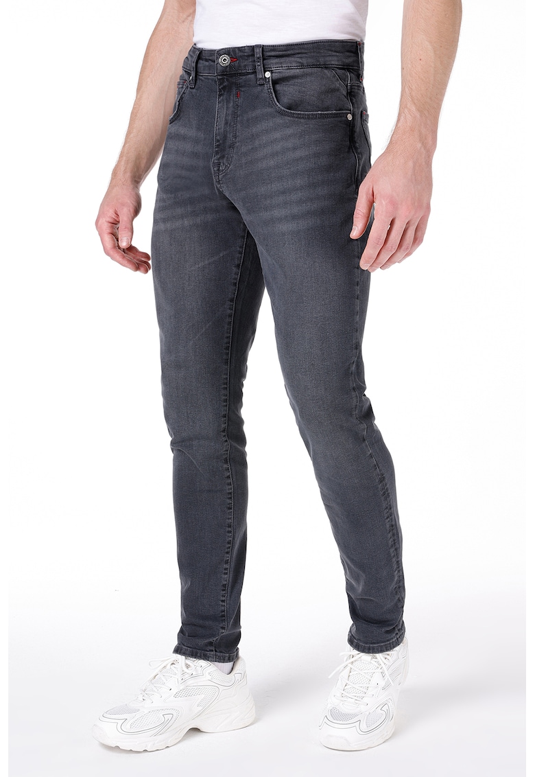 Blugi slim fit cu detalii cu aspect deteriorat - Gri