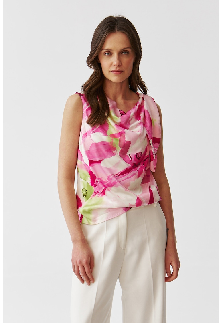 Bluza cu model - fara maneci - cu fronseuri - Roz/Verde menta