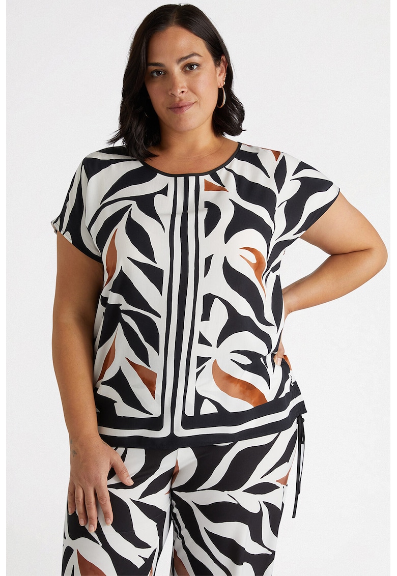 Bluza cu snururi laterale - Alb/Negru/Maro