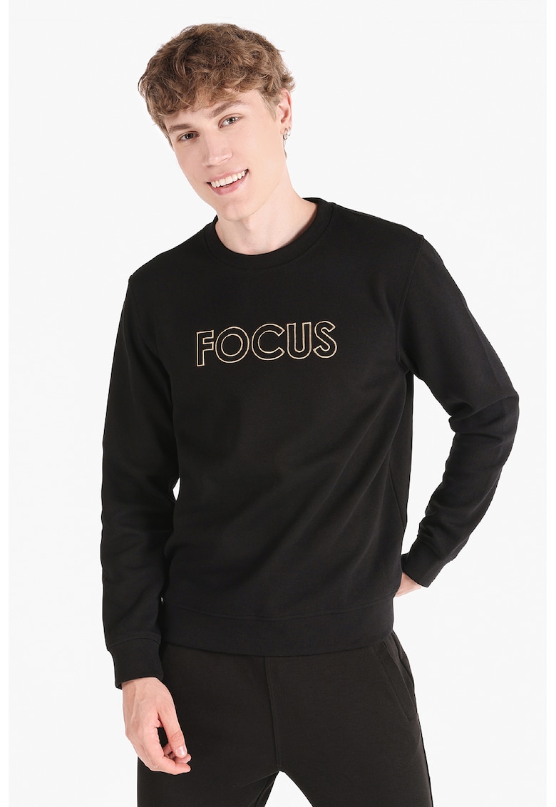 Bluza sport cu decolteu la baza gatului si text brodat - Negru