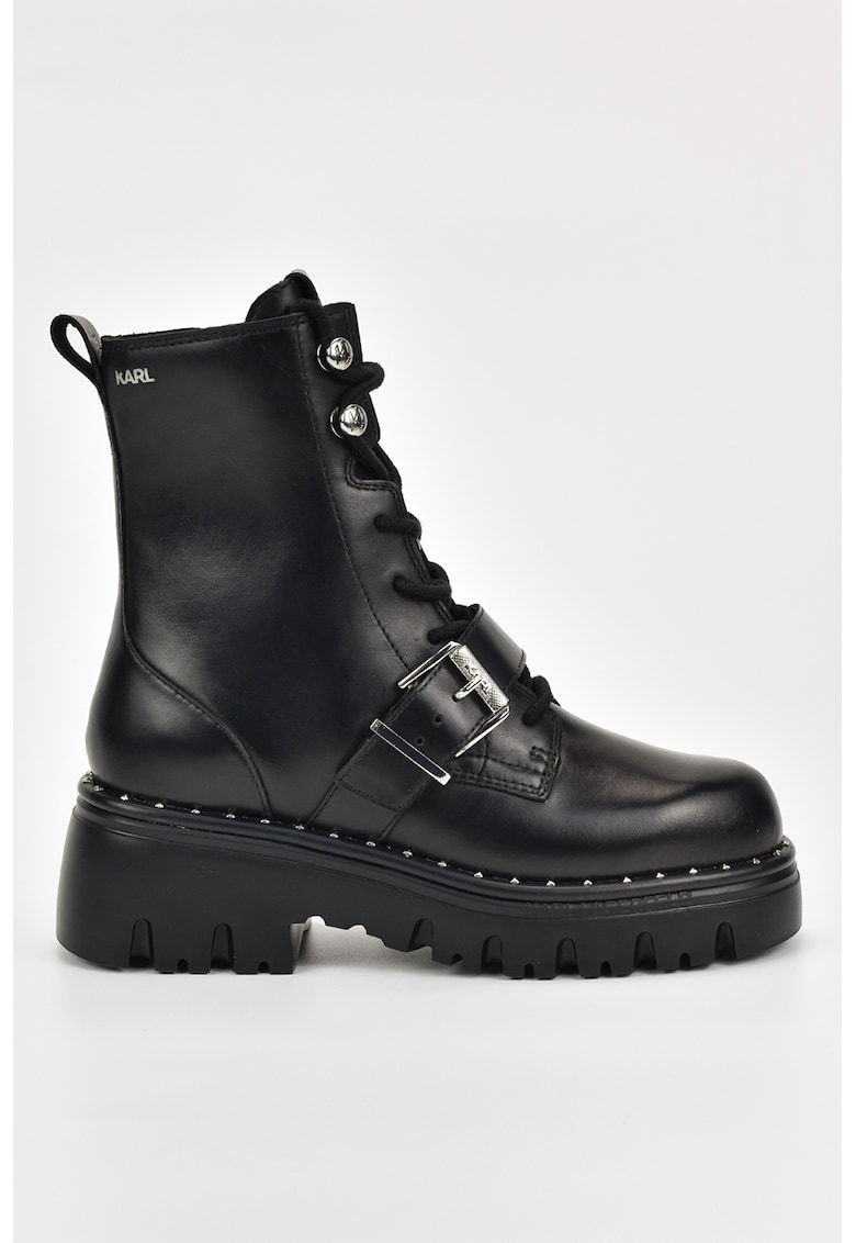 Bocanci din piele cu detaliu cu o curea - Negru