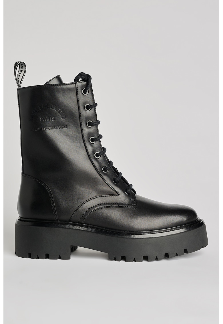 Bocanci din piele cu logo in relief - Negru
