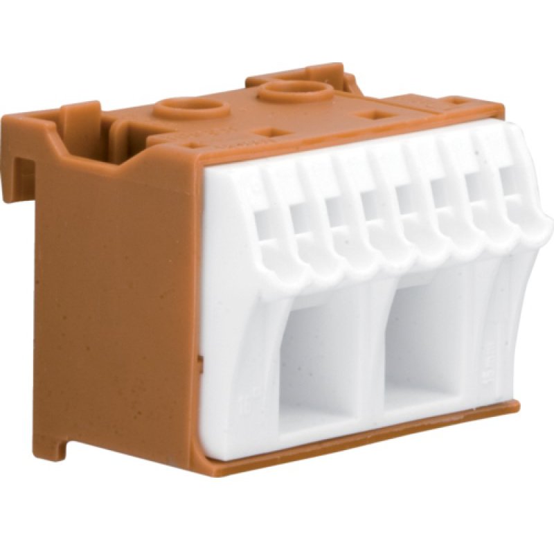 Culoare: maro Conexiuni : cupru 8x1.5-4mmp + 2x4-16mmp Conectare rapida-Quick Connect Se fixeaza in tablou pe sina omega, cu ajutorul adaptorului KN00