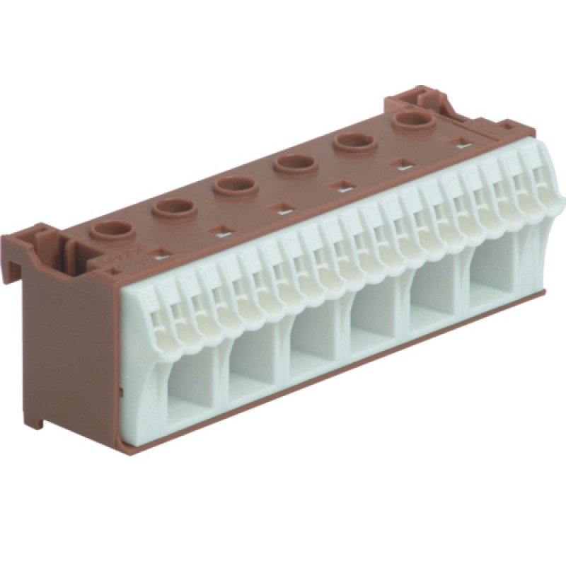 Culoare : maro Conexiuni : cupru 20x1.5-4mmp + 6x4-16mmp Conectare rapida-Quick Connect Se fixeaza in tablou pe sina omega, cu ajutorul adaptorului KN