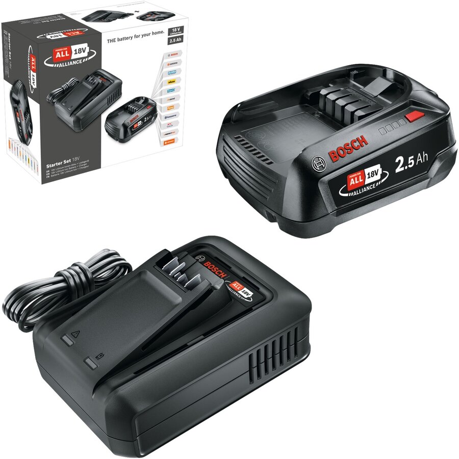 Descrierea detaliată pentru Bosch DIY & Garden Cordless Starter Set 18V 1x 2.5Ah + Quick Charger AL 18V-44 black, Li-ion battery 2.5Ah, POWER FOR ALL ALLIANCE nu este disponibilă momentan.