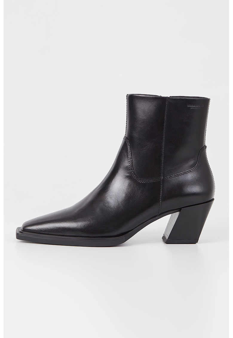 Botine de piele cu varf patrat - Negru