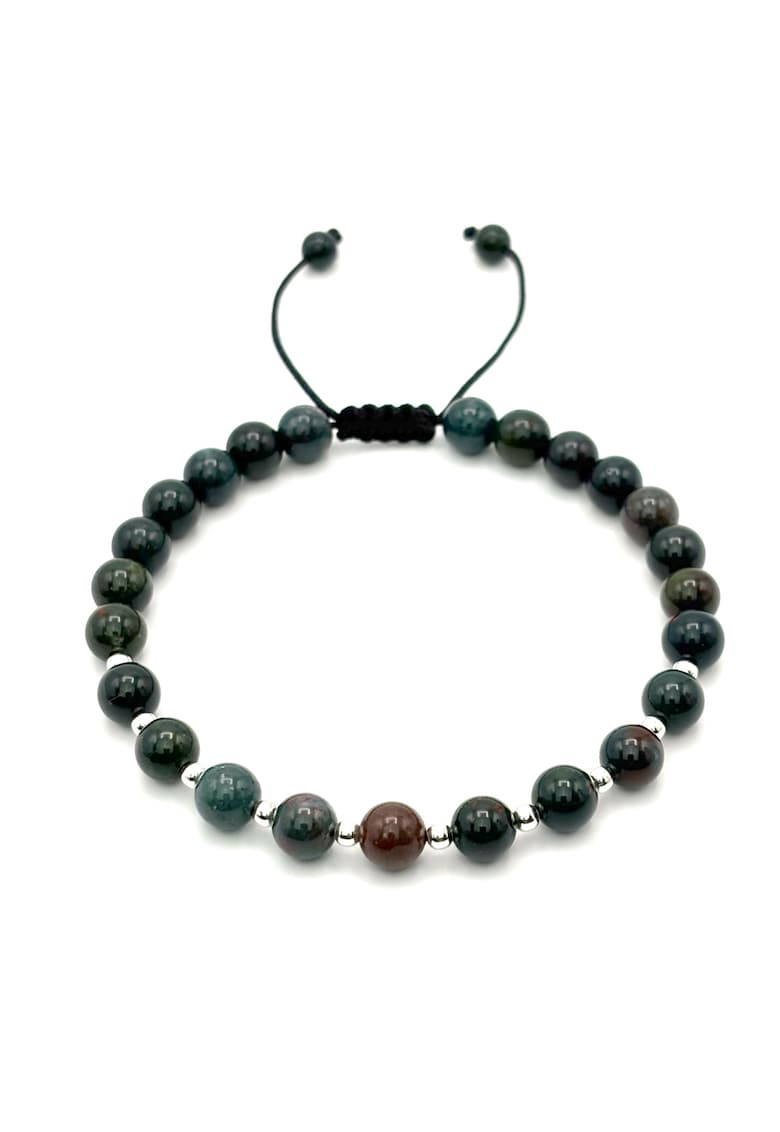Bratara cu 10 bile din Argint 925 si pietre naturale Agat Indian de 6mm - snur reglabil - barbat