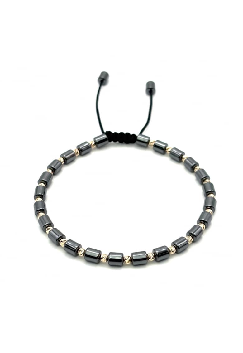 Bratara cu 23 bile din AUR 14K si Hematit - reglabila - barbat
