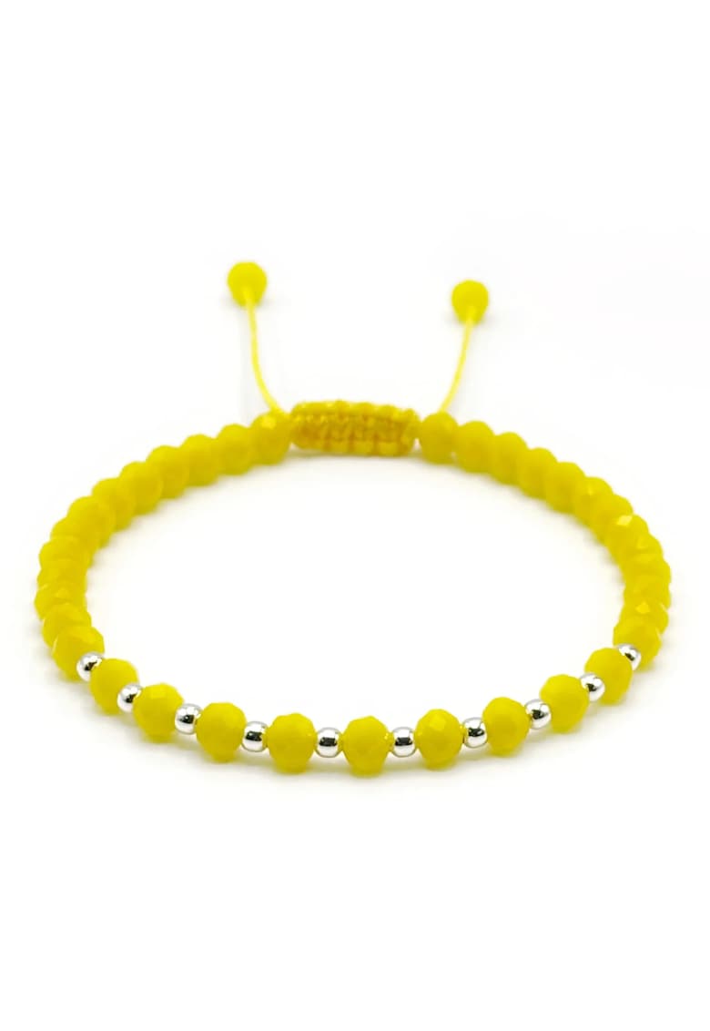 Bratara cu bile din Argint 925 si cristale Galbene - snur reglabil - dama