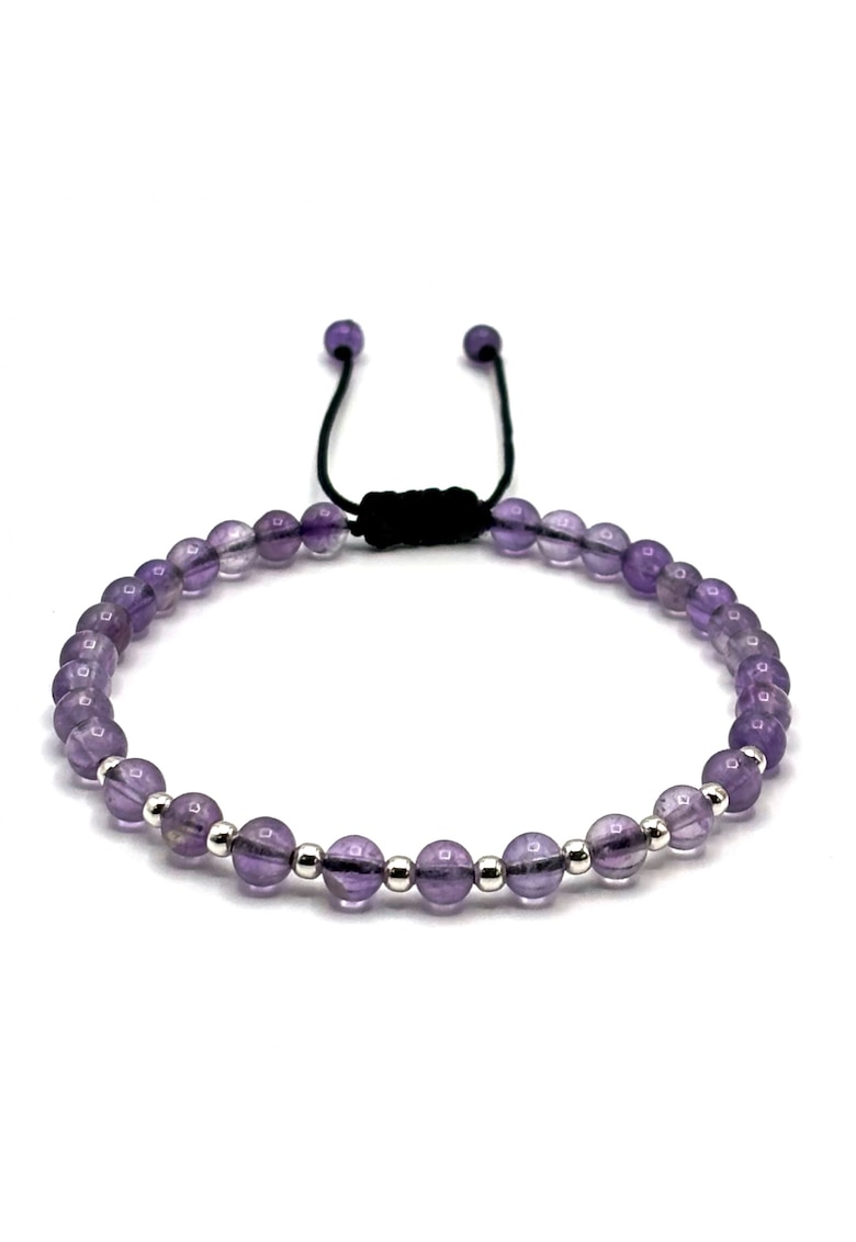 Bratara cu bile din Argint 925 si pietre semipretioase Ametist - snur negru reglabil - barbati