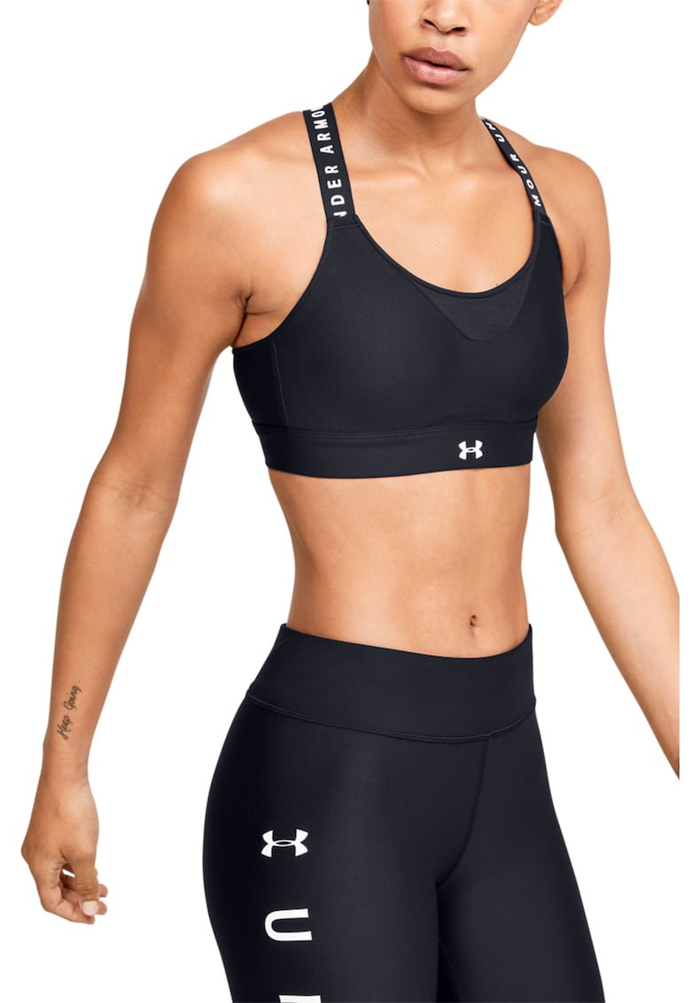 Bustiera cu suport ridicat si bretele incrucisate pe spate pentru fitness Infinity - Alb/Negru