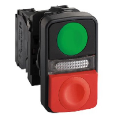 Buton cu capat dublu pentru proiectare, iluminat, verde incastrat/Rosu 22 1No XB5AW73731M5