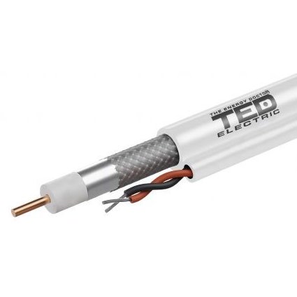 Cablu coaxial cu ALIMENTARE 75 ohm RG59 cupru 0,81 mm + 2 fire alimentare CCA x 0,75 mm, rola 305ml, TED003799