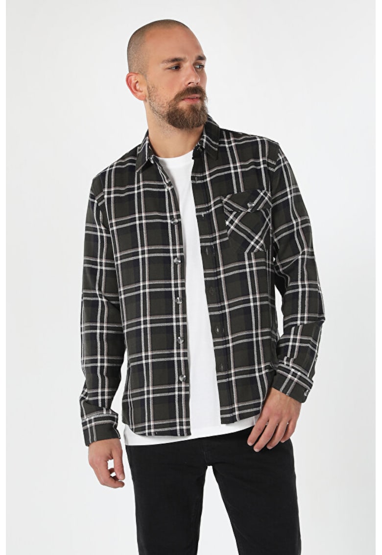 Camasa Cu Maneca Lunga De Barbati Kaki Slim Fit Cl1061367 - Verde