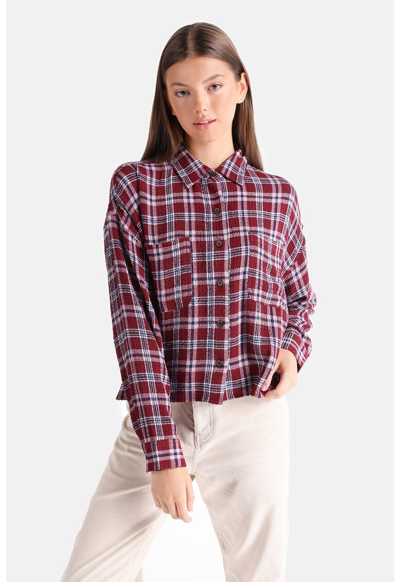 Camasa cu model in carouri si buzunare pe piept - Alb/Rosu inchis
