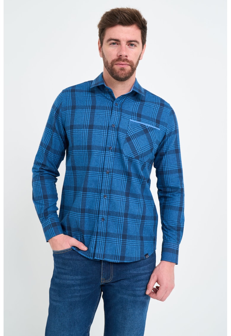 Camasa din bumbac cu model in carouri si maneci lungi - Negru/Albastru inchis
