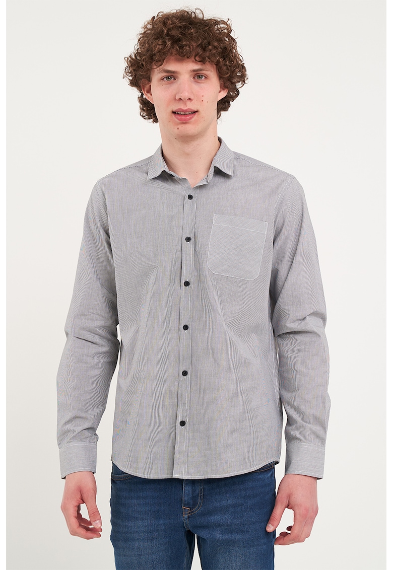 Camasa din bumbac cu model in dungi - Gri