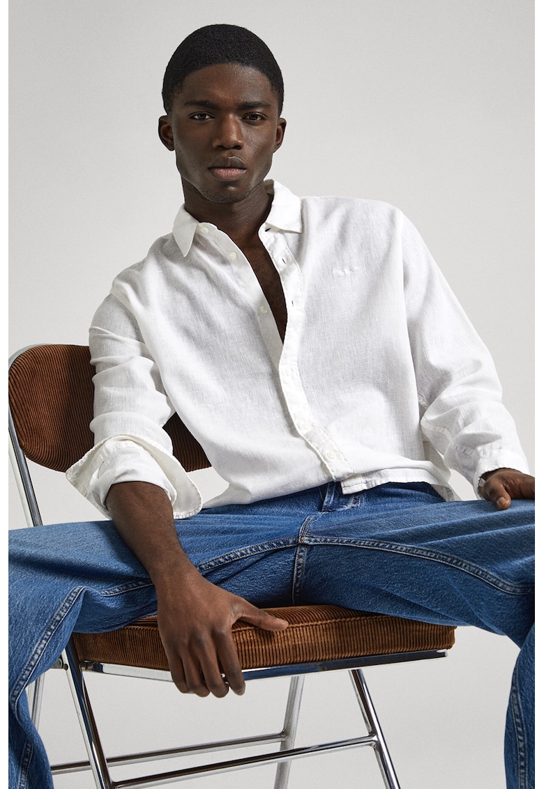 Camasa din in cu broderie logo - Alb