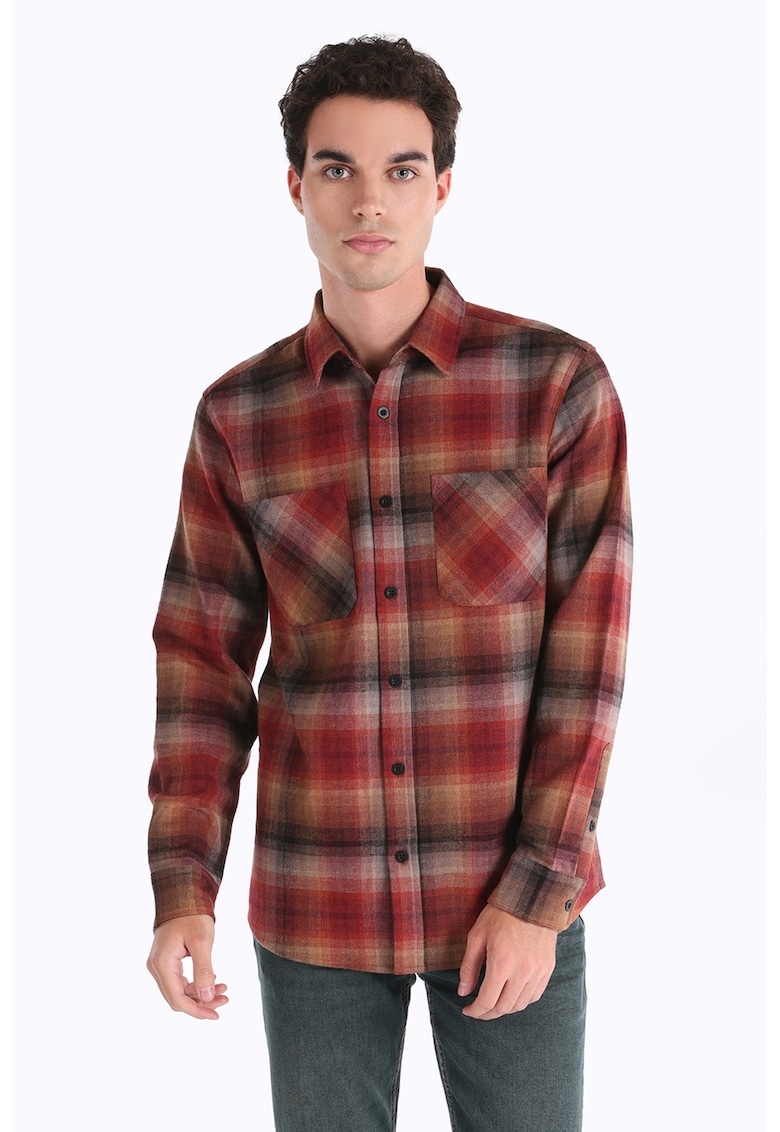 Camasa in carouri cu buzunare pe piept - Rosu/Portocaliu