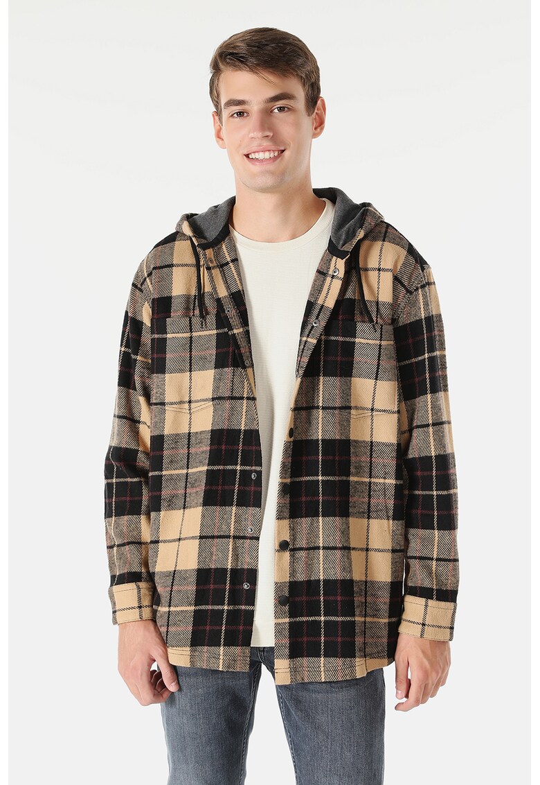 Camasa in carouri cu gluga - Negru/Bej