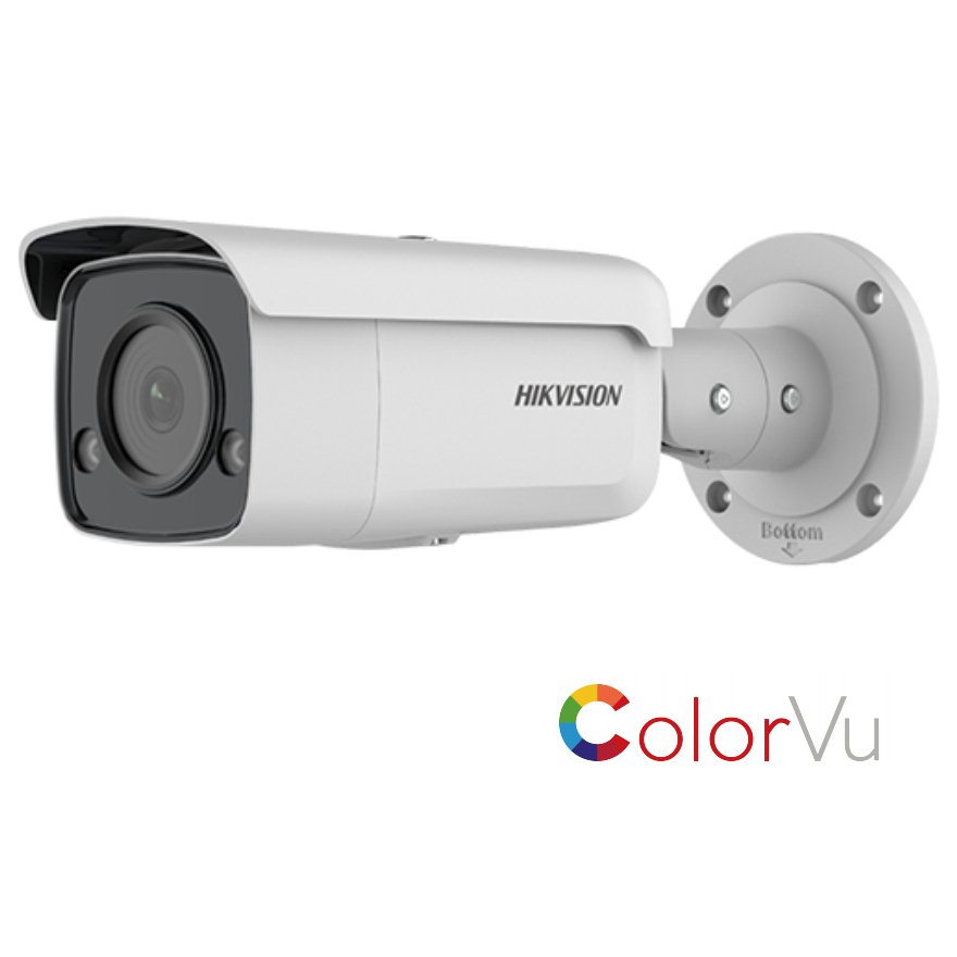 Camera IP ColorVu Hikvision DS-2CD2T47G2-L-4mm, 4MP, lentila 4mm, lumina alba 60m, 130 dB WDR, slot card, PoE, IP67 Varianta cu lentila de 2.8mm este
