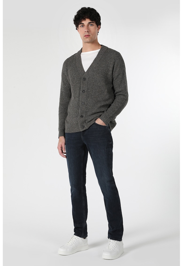 Cardigan cu nasturi si decolteu in V - Gri inchis melange