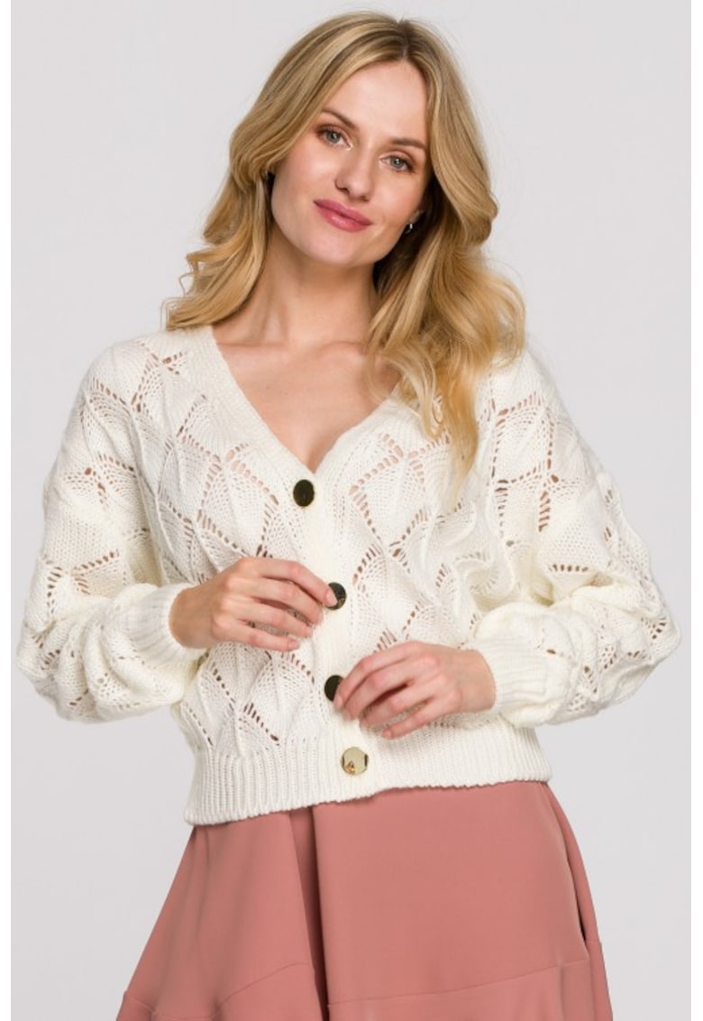 Cardigan scurt cu nasturi - Ecru