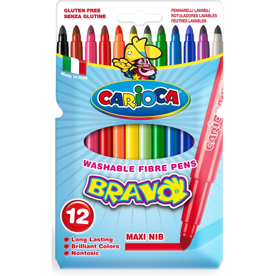Carioca lavabila, varf gros 6mm, 12 culori/cutie, CARIOCA Bravo
