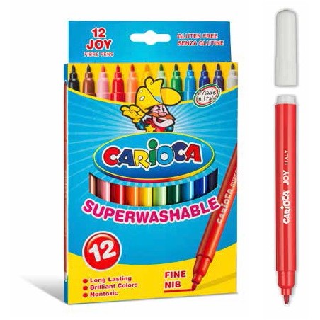 Carioca super lavabila, varf subtire 2.6mm, 12 culori/cutie, CARIOCA Joy