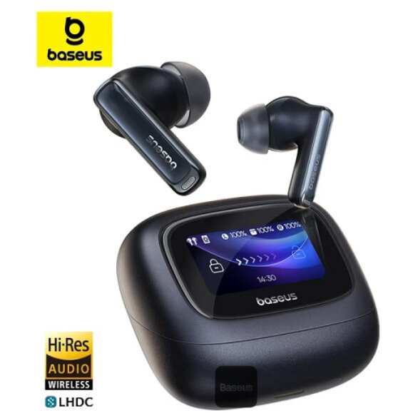 Casti Bluetooth Bowie M2s Ultra TWS ANC Smart Touch Display BT 5.4 Hi-Res Audio Negru