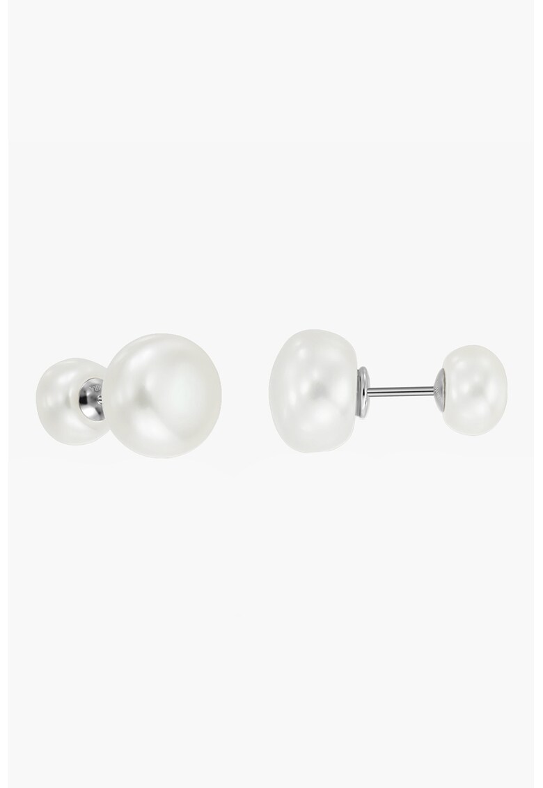 Cercei din argint veritabil cu tija si perle naturale - Alb/Argintiu