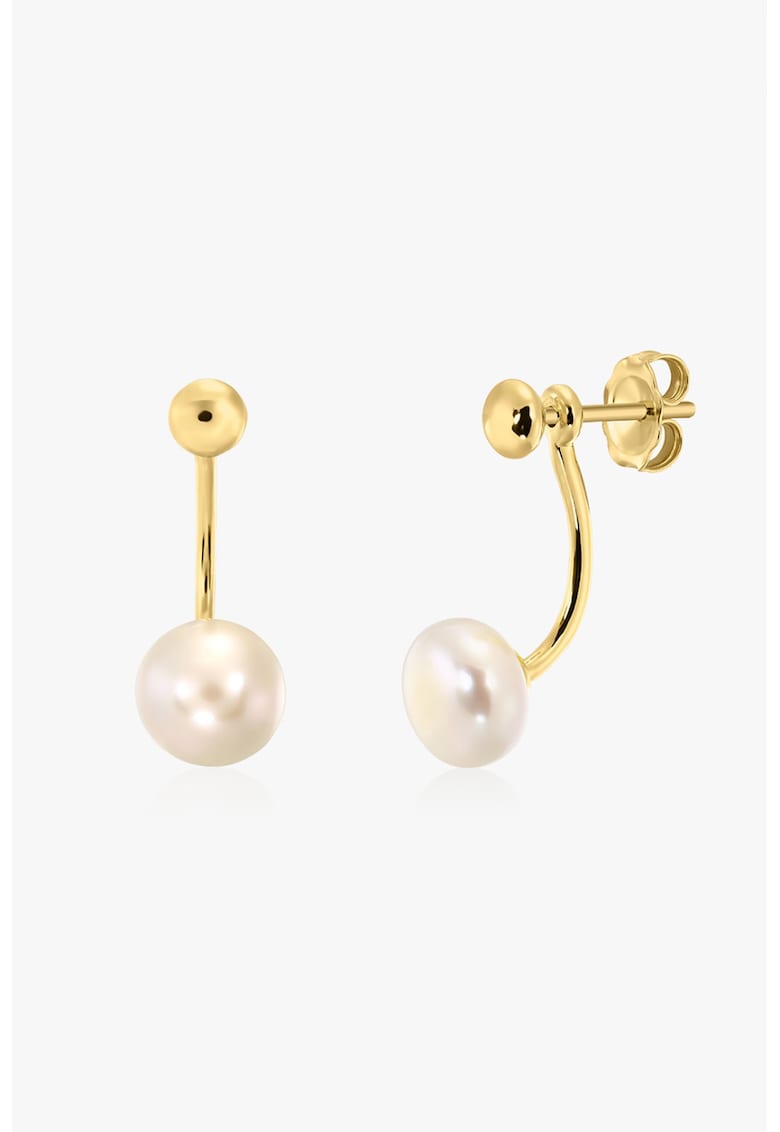 Cercei placati cu aur de 14K si decorati cu perle - Alb/Auriu