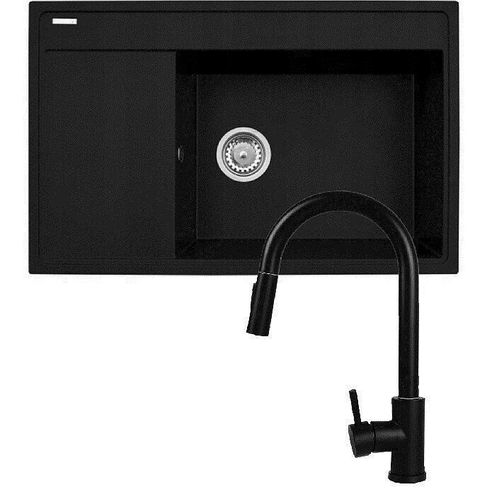 Chiuveta Bucatarie CAMEA 79x50CM 1B 1D Pyragranite + Baterie IDEA Monocomanda Negru