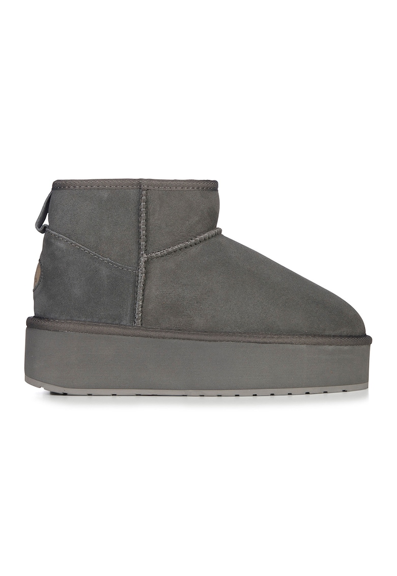 Cizme flatform de piele intoarsa - fara inchidere Stinger - Gri carbune