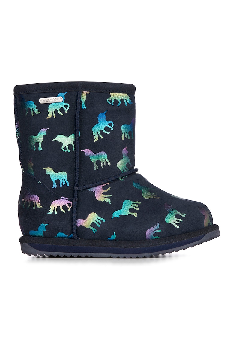 Cizme impermeabile scurte de piele intoarsa - fara inchidere Rainbow-Unicorn - Bleumarin