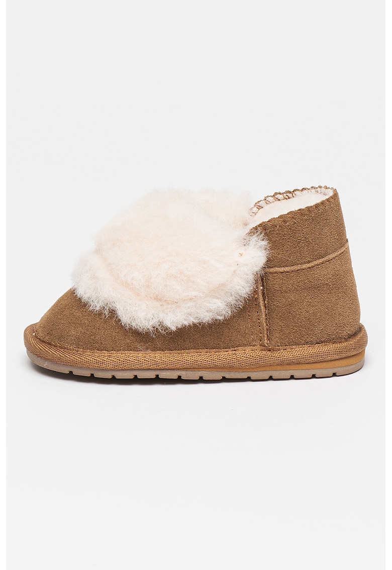 Cizme joase din piele intoarsa cu garnituri din blana sintetica Toddle Mintaro - Maro