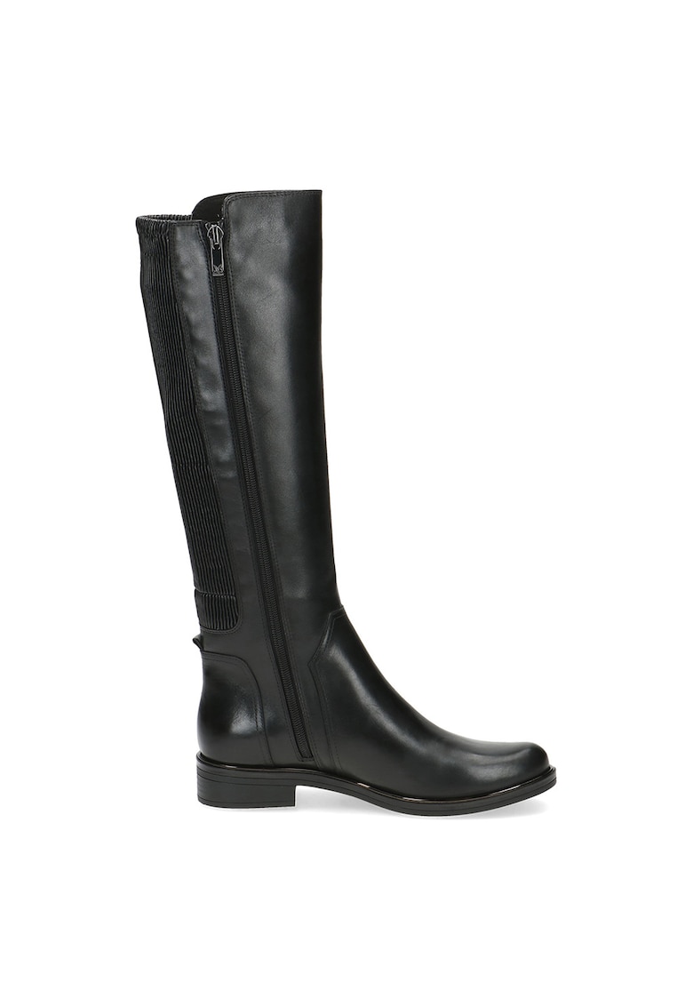 Cizme medii cu segmente din piele - Negru